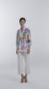 The blouse is made from Dui fabric, a lightweight raw silk with a wonderful natural texture. This gives it a fluid drape and a loose fit that does not cling to the body, ensuring comfort and a relaxed, artistic style. It is the perfect canvas for such a vibrant piece.