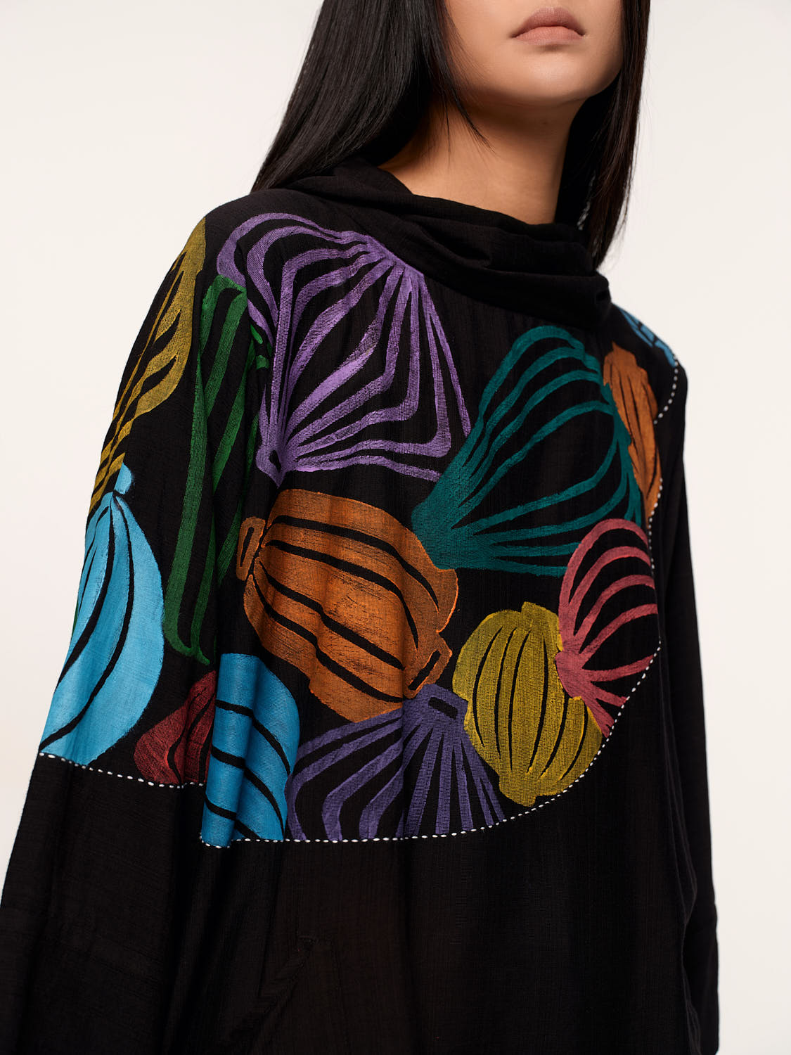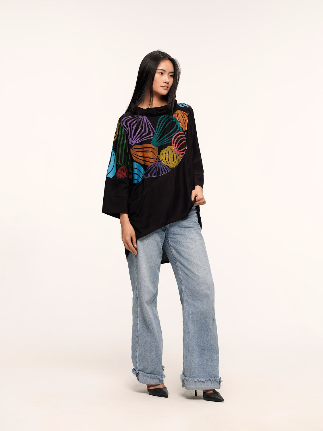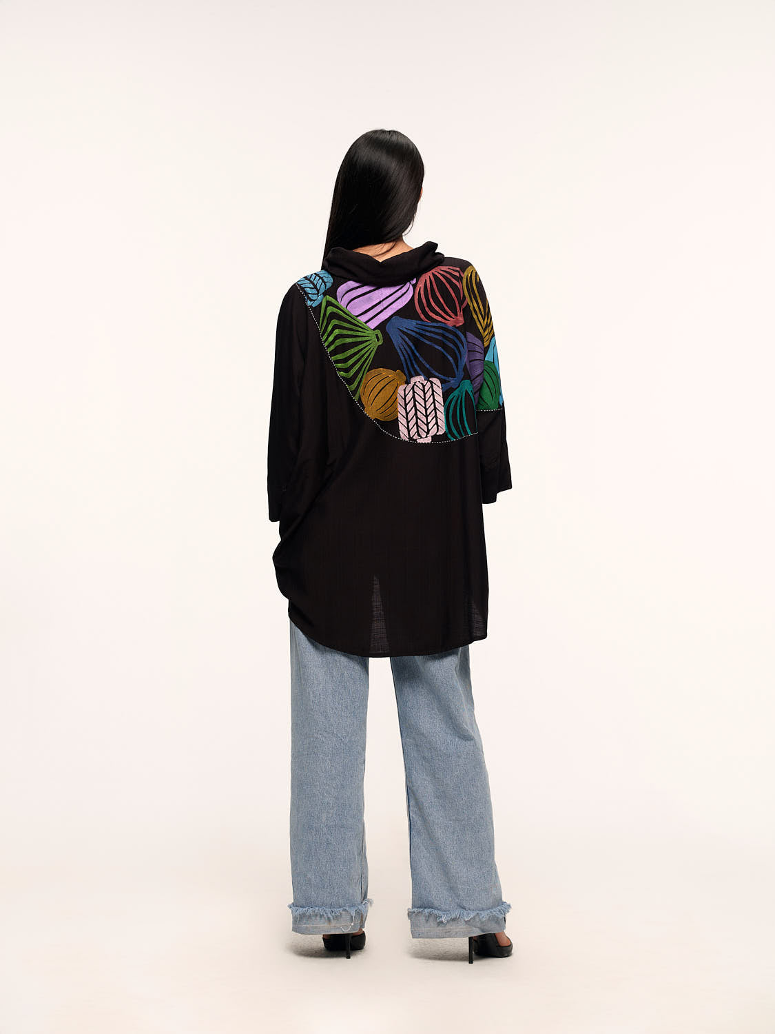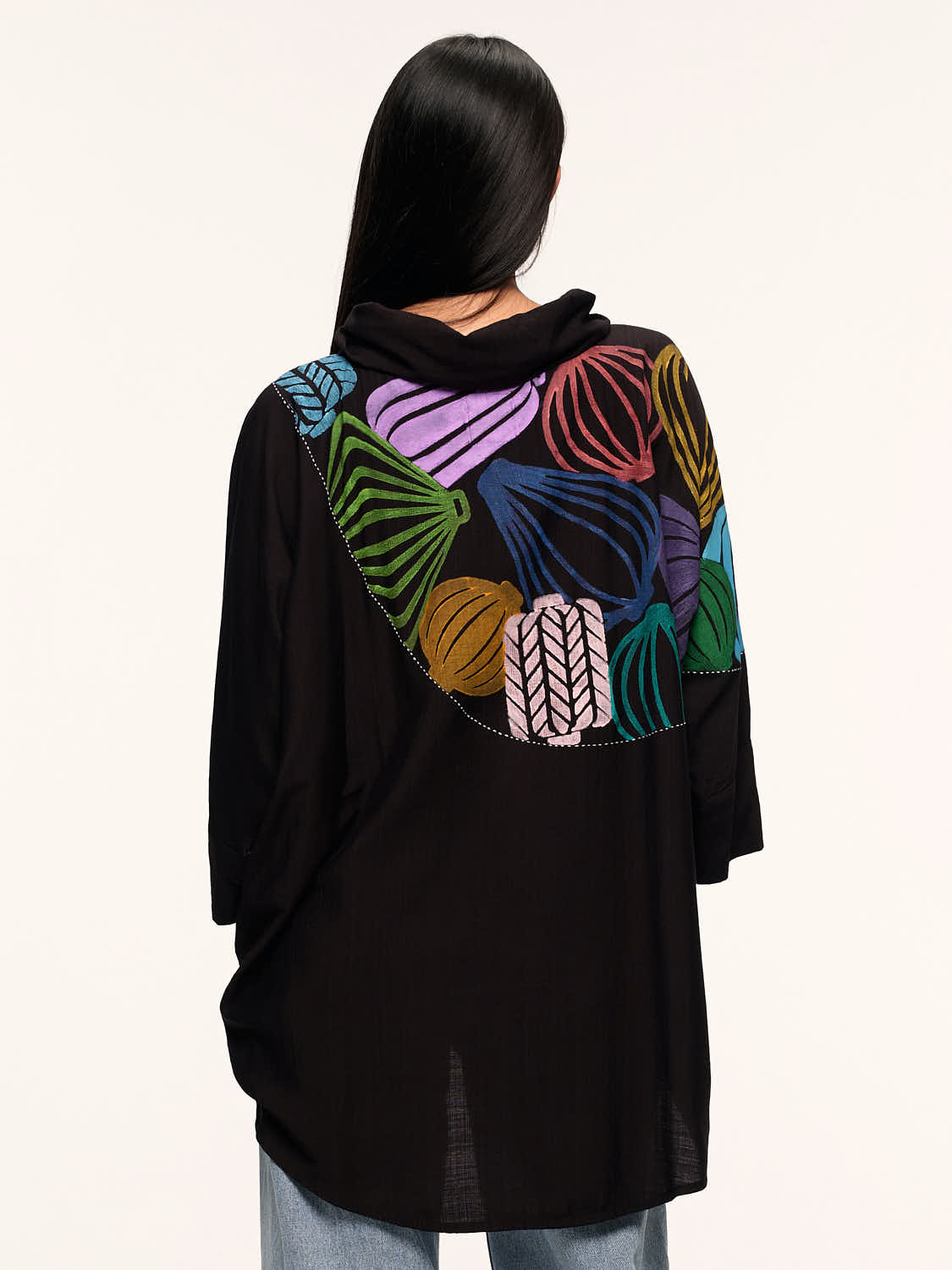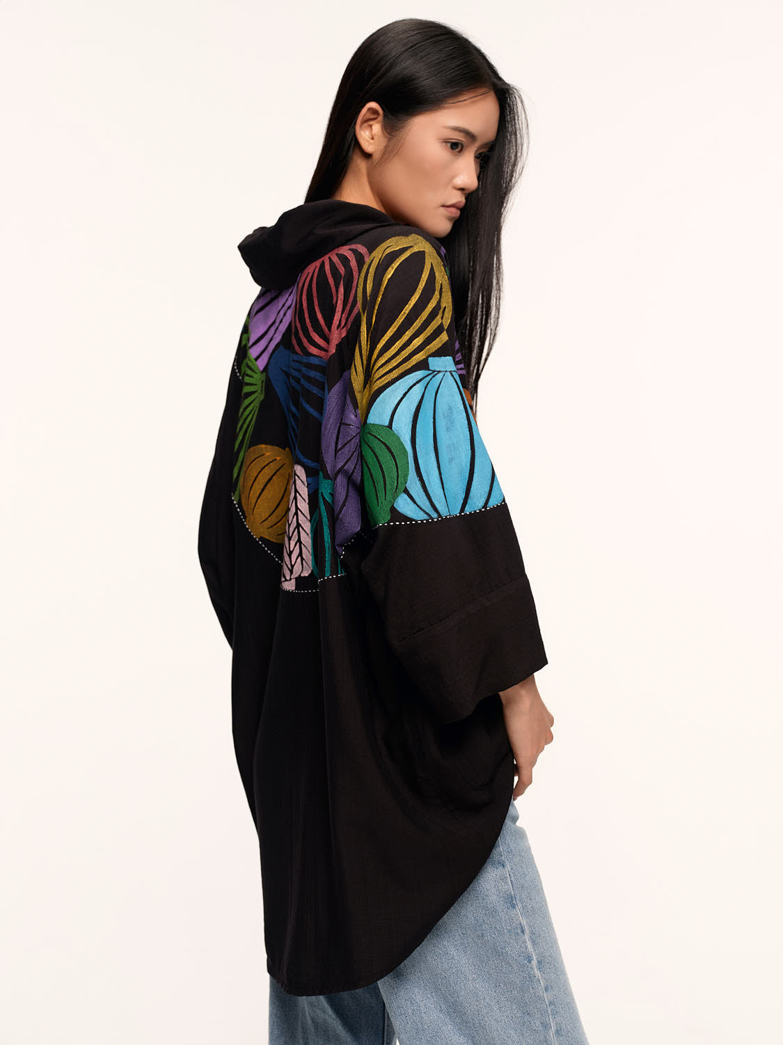On the night of the Hoi An festival, hundreds of small, colorful paper lanterns float on the Thu Bon River, creating a path of undulating light. This blouse captures the delicacy of that moment. It is not only a tribute to the festival, it is the feeling of carrying one of those floating lanterns, a small light that dances with you.