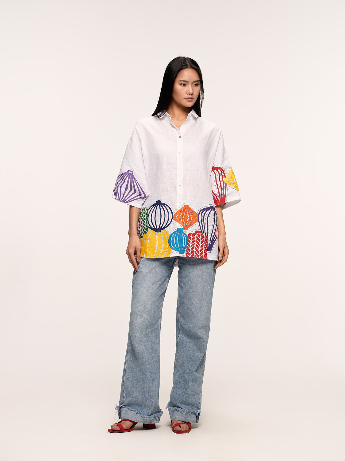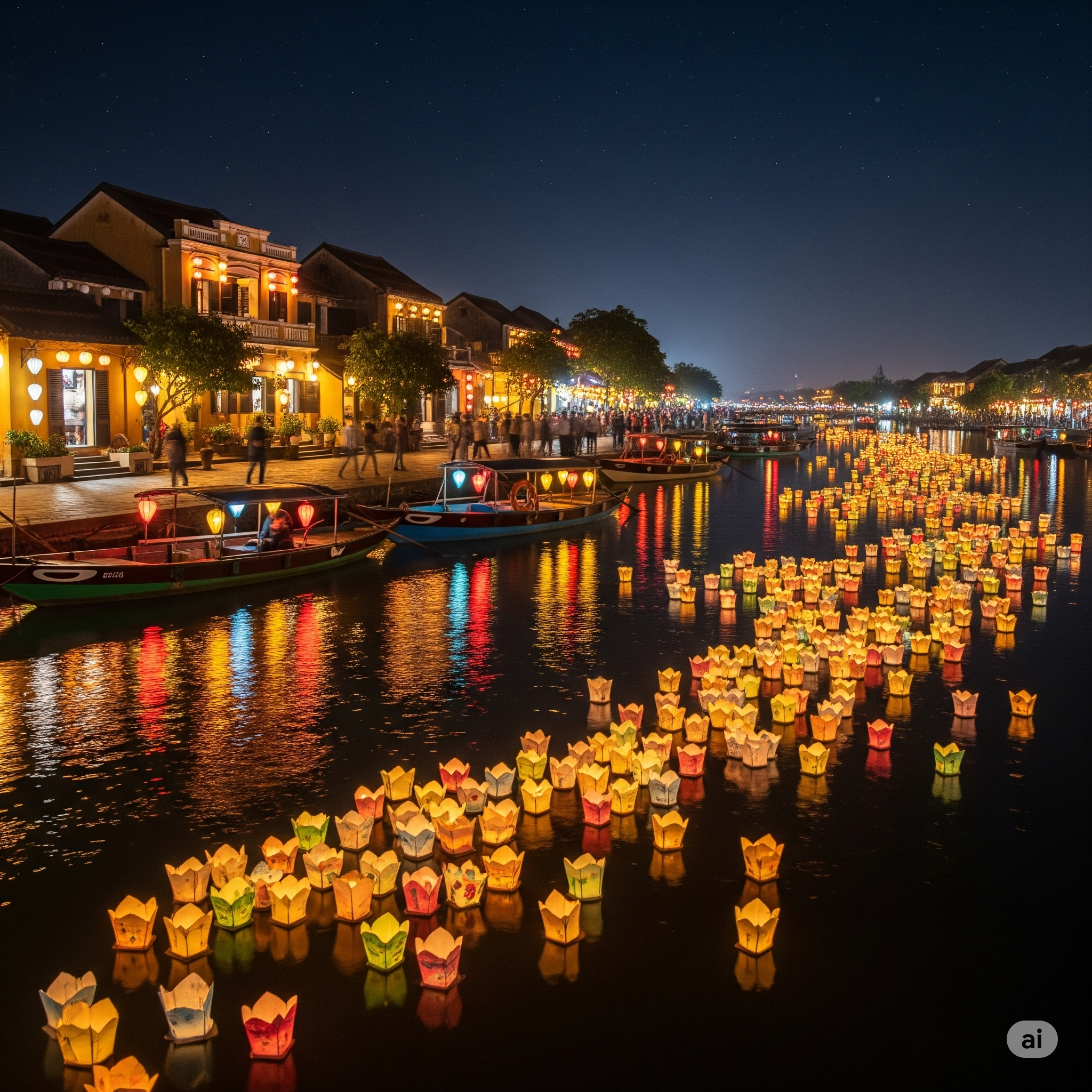 Every month, on the night of the full moon, the ancient city of Hội An turns off its electric lights and is illuminated solely by the magic of thousands of silk lanterns. This shirt is a tribute to that moment, a piece of that magical night that you can carry with you. It is not a garment, it is a luminous memory.